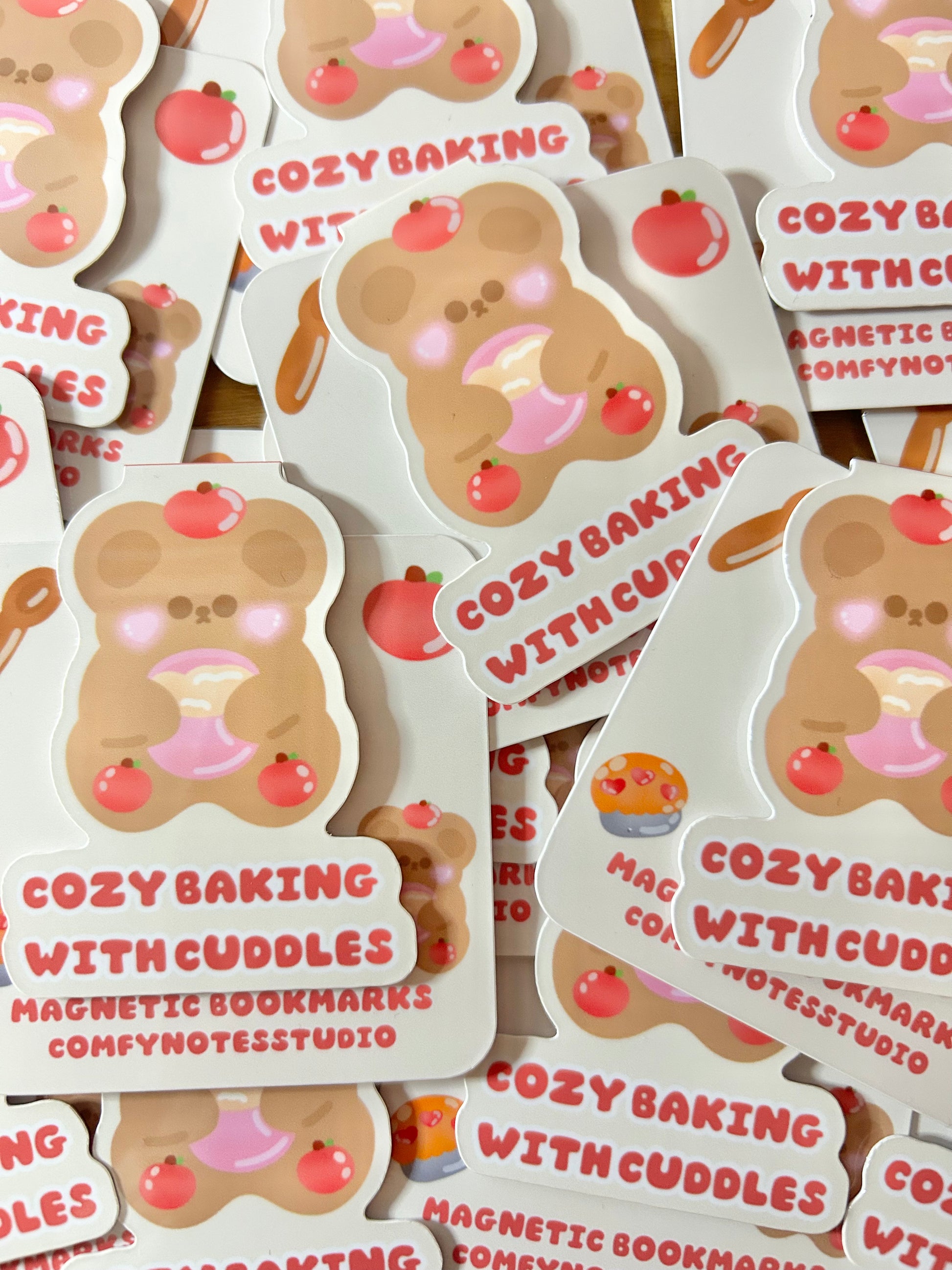 Cuddles is baking a yummy apple pie in this magnetic bookmark which was drawn by me :)